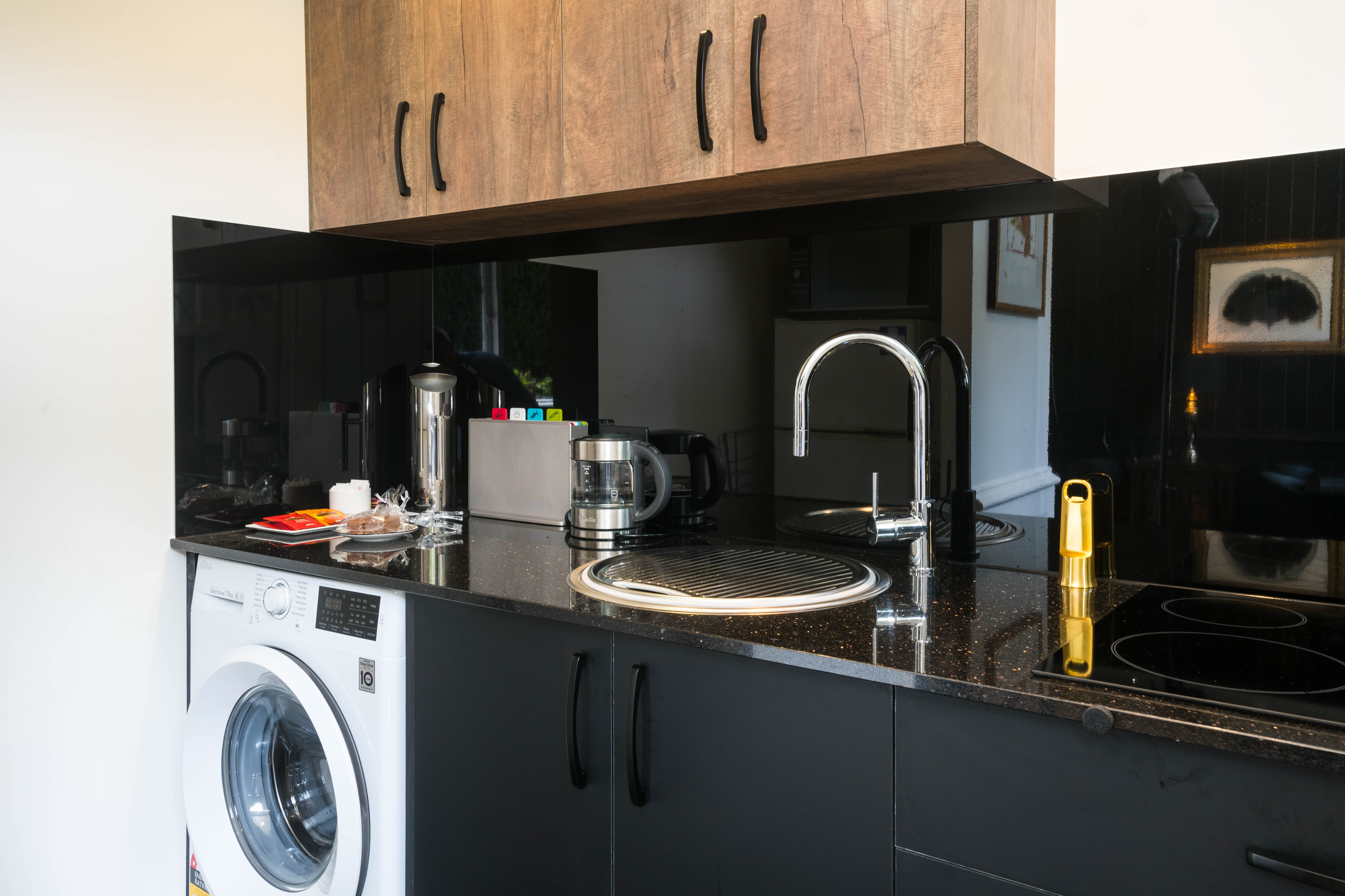 Denna lägenhet har tvättmaskin, vattenkokare och ugn.